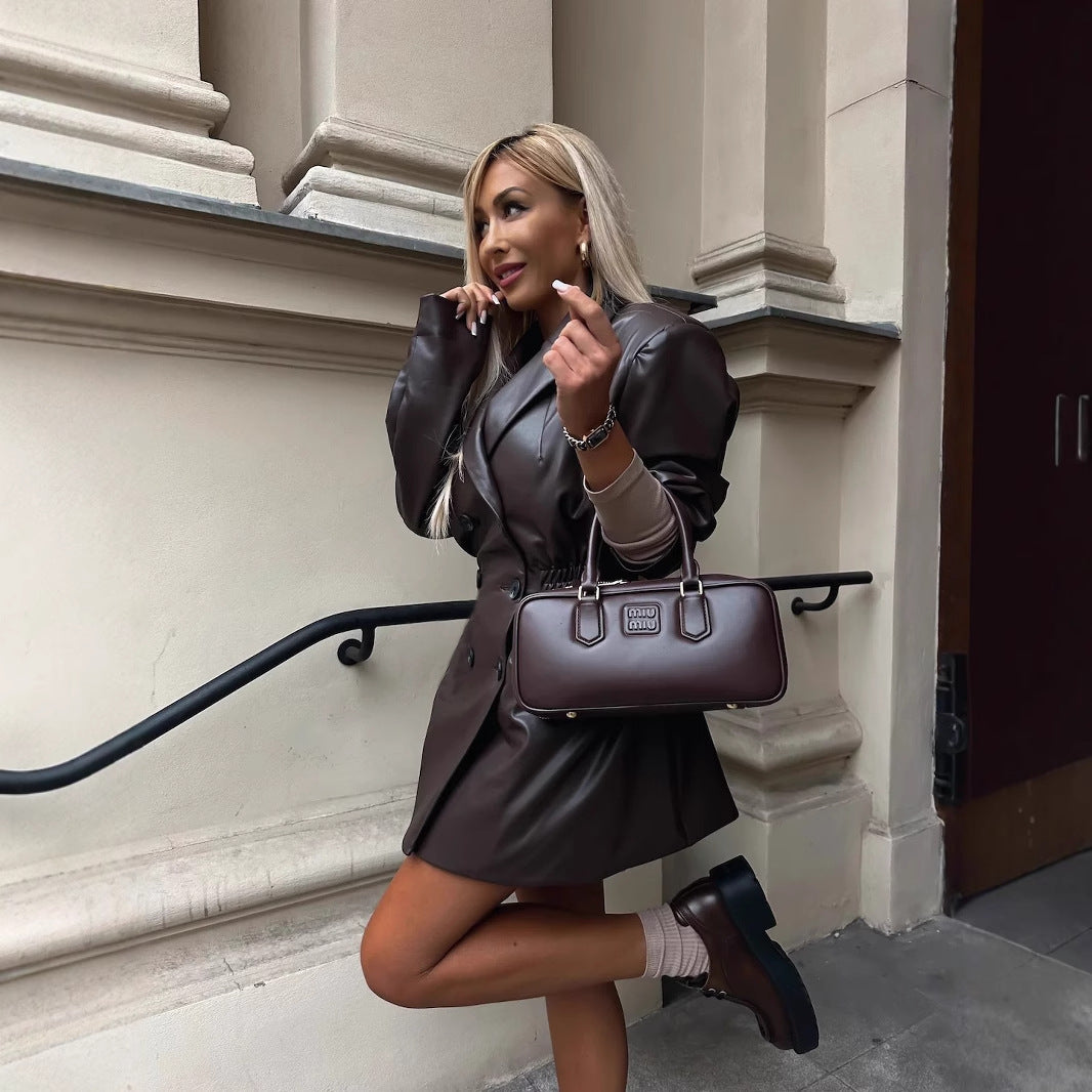 Veste de costume à col corset en cuir artificiel européen et américain