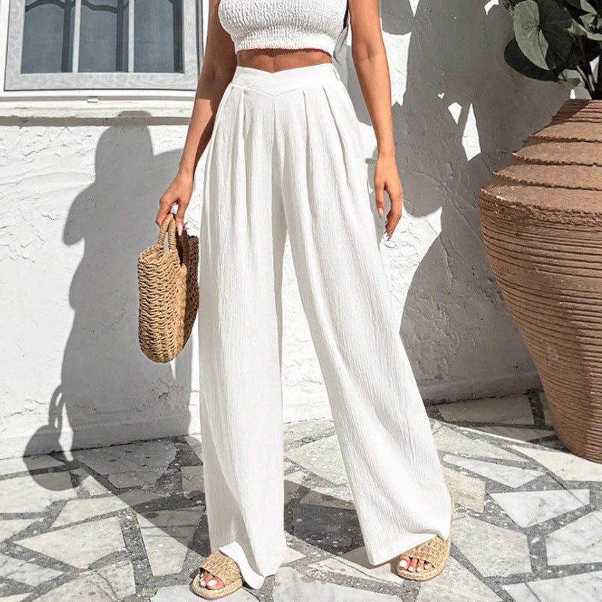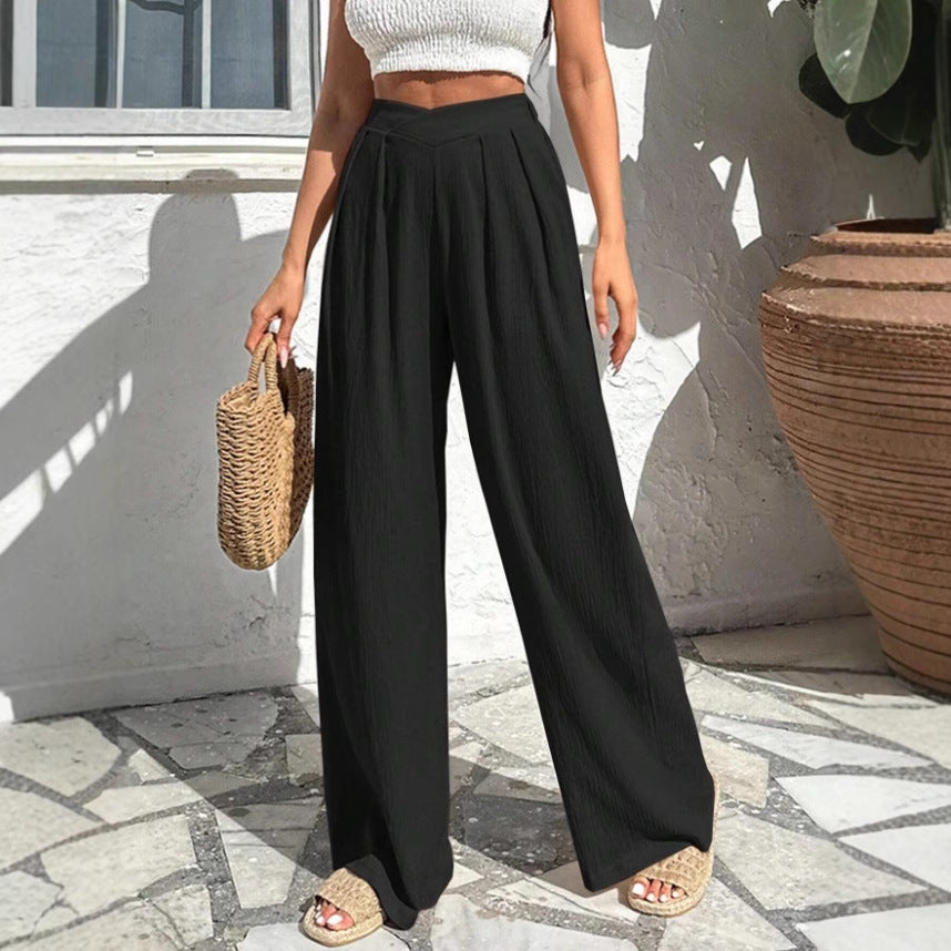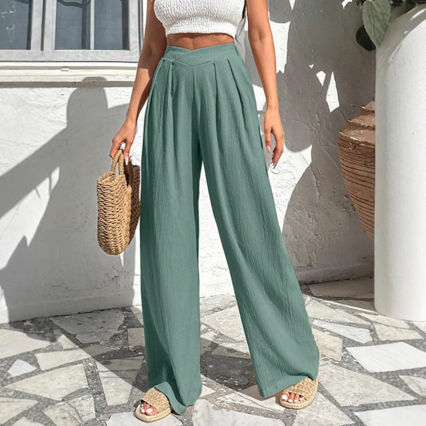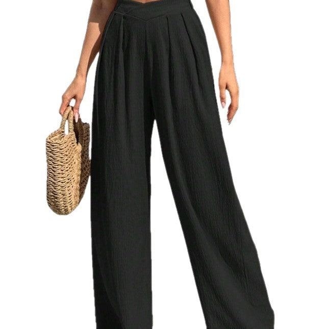 Pantalon ample taille haute décontracté à plis croisés pour l'été, style Commute