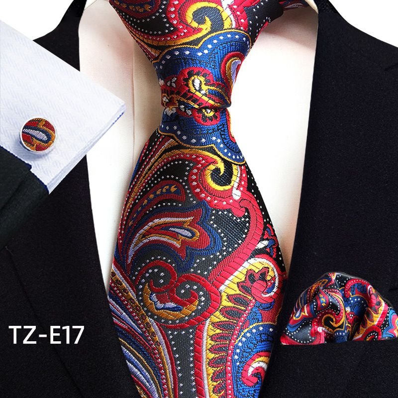 Ensemble trois pièces : cravate, foulard, pochette, boutons de manchette et mouchoir de poche à motif cachemire