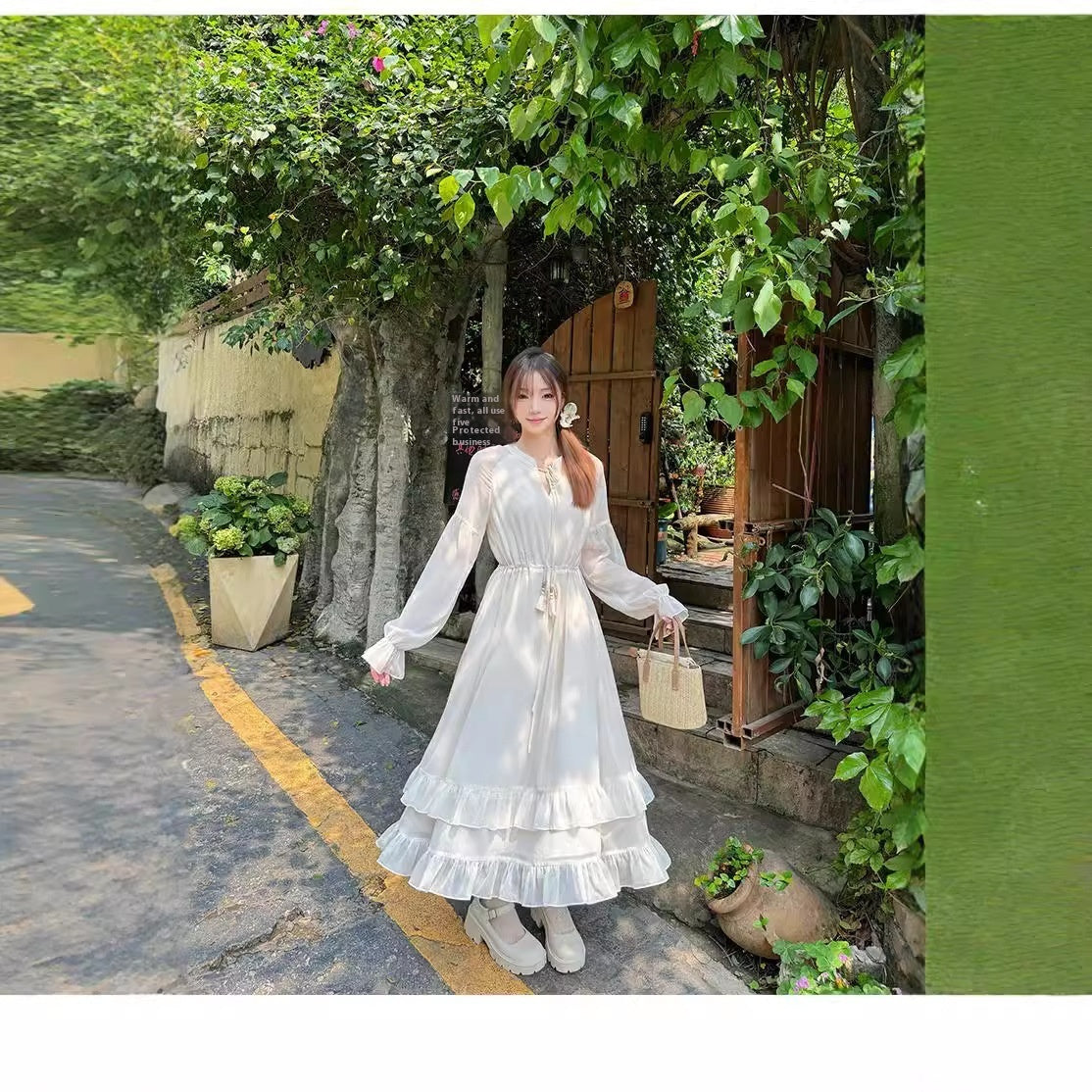 Petite robe blanche pour femme, vêtement français à taille serrée